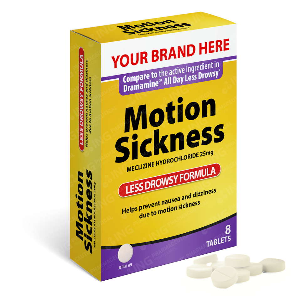 MOTION SICKNESS - Meclizine Hcl 25mg tablets - Compare to Dramamine® All Day Less Drowsy - OTC Own Brand Private Label