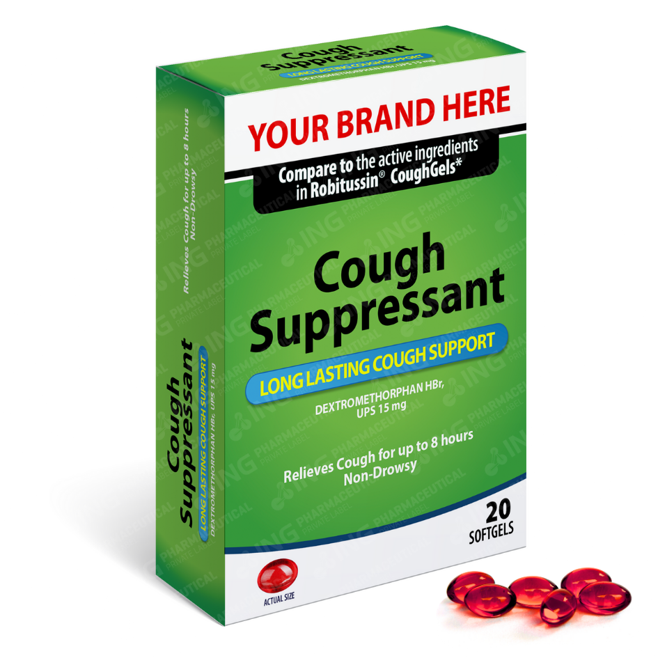 Private Label Cough Suppressant Dextromethorphan Hbr 15mg Softgels - Compare to Robitussin® CoughGels - OTC Own Brand Private Label.