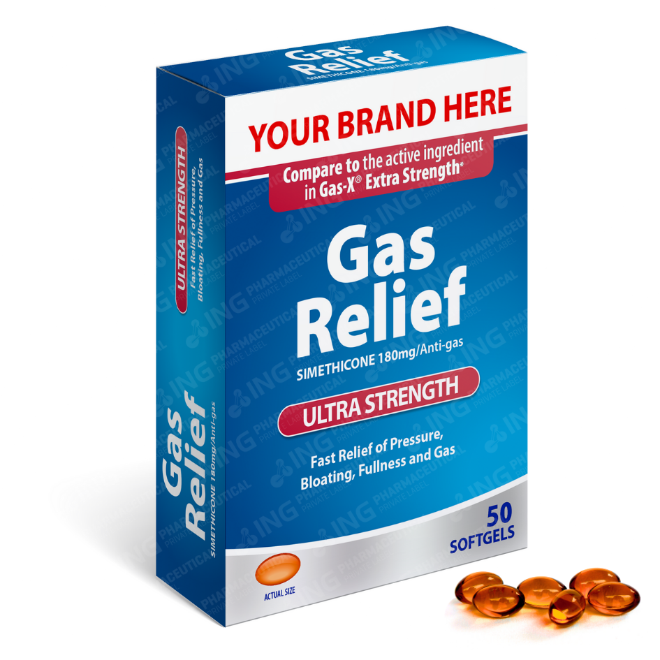 Private Label Anti-Gas Simethicone 180mg Softgel - Compare to GAS-X® Ultra Strength Gas Relief - OTC Own Brand Private Label.